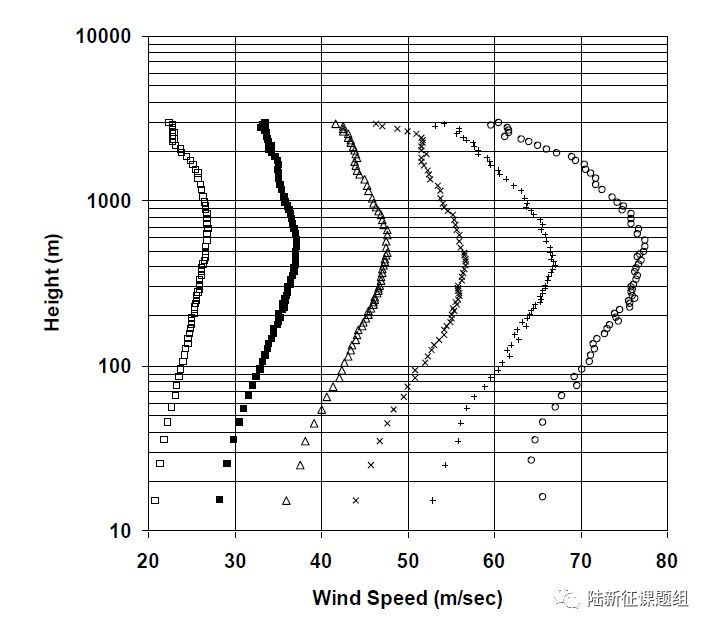 圖3 Hazus中最大風速半徑附近平均風速與高度關(guān)系
