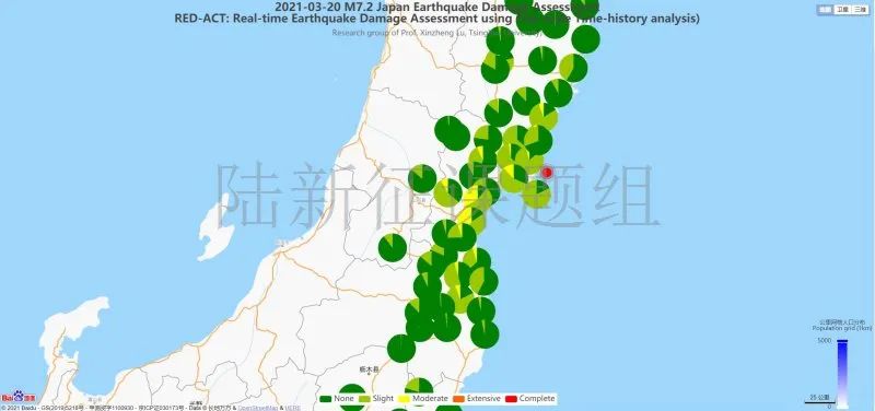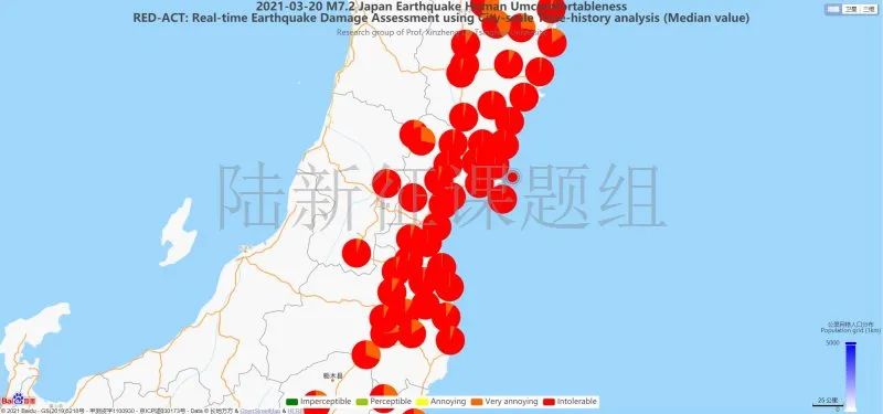 圖4 20210320日本本州東岸近海7.2級地震不同臺站地震記錄破壞力分布圖