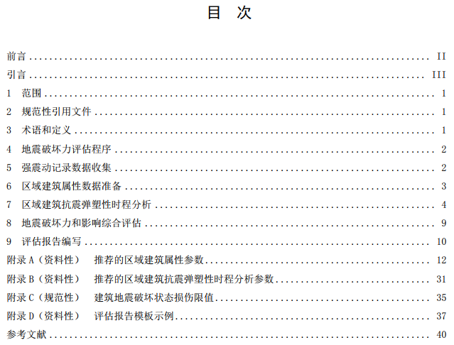 本標準適用于破壞性地震發生后基于強震動記錄評估地震的破壞力,并建議了平立面布置規則的高層鋼筋混凝土框架剪力墻或鋼筋混凝土剪力墻結構、多層鋼筋混凝土框架或鋼框架結構、砌體結構與土木結構的計算模型和參數。對于其他結構類型,應進行專門研究。
