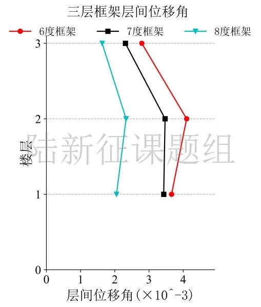 (a)立面布置示意圖(b)層間位移角 圖4 典型三層鋼筋混凝土框架結(jié)構(gòu)