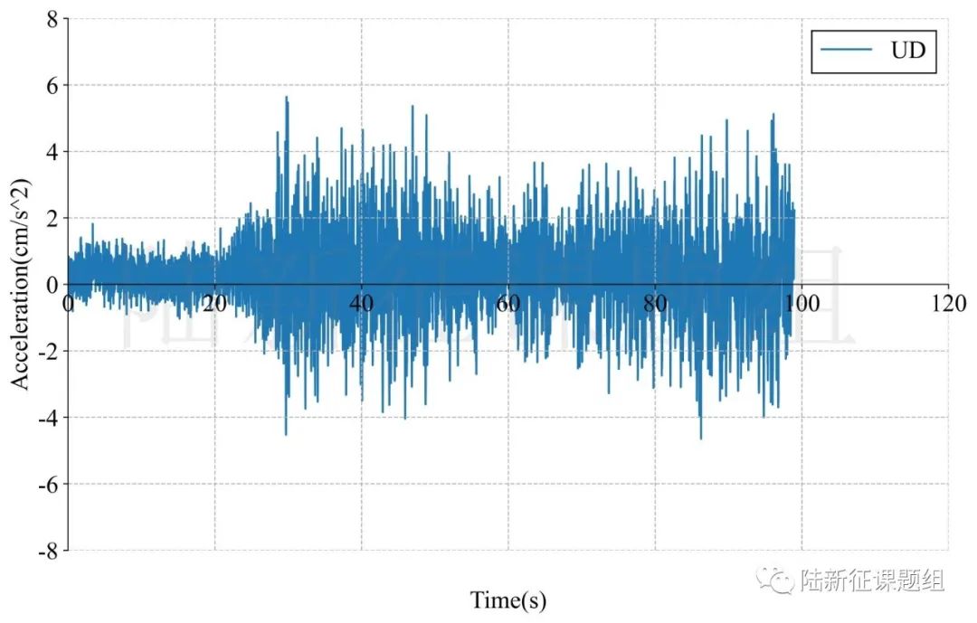 當地氣象局獲得的近場地震動如圖1所示,記錄到水平向地震動峰值加速度為501cm/s/s,豎直向地震動峰值加速度為476cm/s/s。由于沒有更具體的數據,所以不能進一步分析。