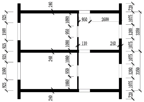 選取圖8所示朱伯龍等開展的五層簡易砌體結構足尺試驗模型,輸入FJ.H0011典型臺站記錄,分析結果表明該結構將處于完好狀態。(朱伯龍等,上海五層砌塊試驗樓抗震能力分析,同濟大學學報,1981,4,7-14.)