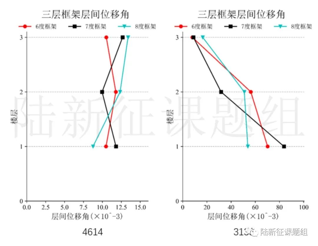 圖15 三層框架層間位移角包絡(luò)