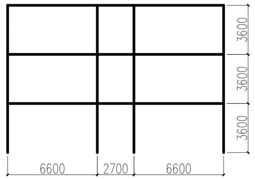 圖2 三層框架結(jié)構(gòu)立面圖(感謝中國建筑設(shè)計研究院王奇教授級高工提供模型)