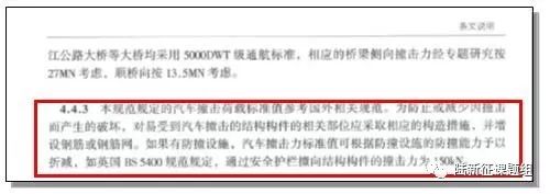 所以,面對超高車輛撞擊引發的問題,我們除了要提高交通管理的水平,在橋梁設計時合理考慮撞擊作用也是需要的。而我國2004版《橋規》雖然對撞擊荷載做了規定,但是主要是參考國外規范,缺乏基于我國實際情況的研究基礎,且條文規定也相對比較簡單(圖4)。國內外對這個問題的研究積累也很少。