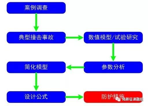 (2) 對可能被撞壞的橋梁,橋梁如果受到撞擊,將遭受多大的撞擊荷載?既有橋梁,如何防護或加固可以抵抗撞擊荷載?新建橋梁,如何設計才能抵抗撞擊破壞?